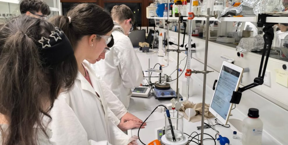 Der Chemie-Leistungskurs des 12. Jahrgangs hat an einem neuen Format des Natlabs der Freien Universität Berlin teilgenommen: In einem Umwelt-Mystery, in dem ein Fischsterben simuliert wurde, untersuchten die elf Schüler/innen des Q3-Kurses verschiedene Analysemöglichkeiten des Flusswassers durch Titrationen. Dabei wurden nicht nur die abiturrelevanten Experimente